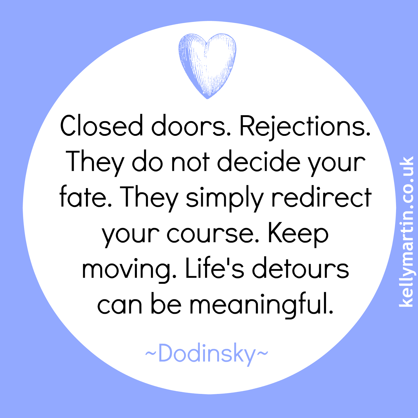 “Close doors. Rejections. They do not decide your fate. They simply redirect your course. Keep moving. Life’s detours can be meaningful.” ~ Dodinsky