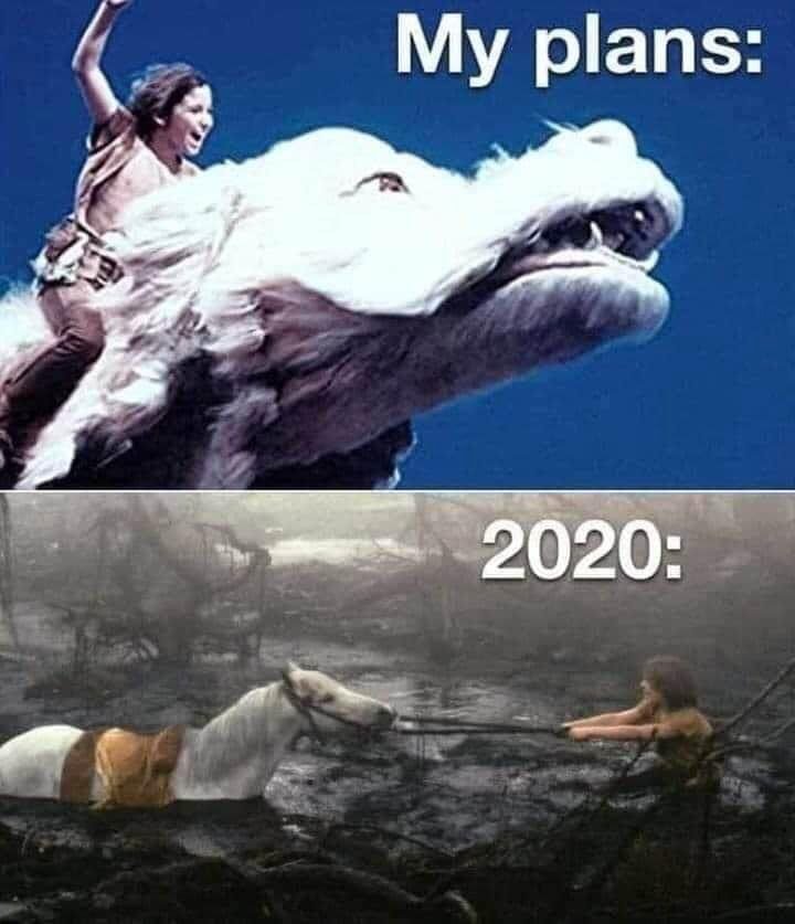 Someone sent me a meme on social media recently and it really explained how 2020 feels. It was of an image of the boy Atreyu from the movie The NeverEnding Story. It was comparing to ideas of 2020. The first was how he felt at the beginning of 2020, riding the luck dragon with great enthusiasm and excitement, flying into 2020 on a wave of fun. The second was the actual experience of 2020 where he was in the darkness with his horse, in the swamp and he was stuck in the swamp.